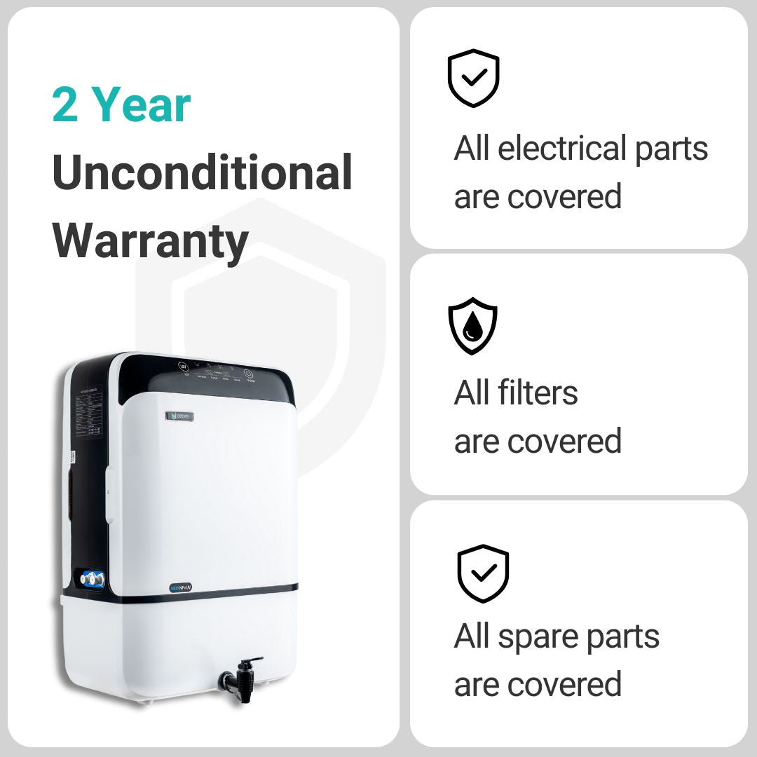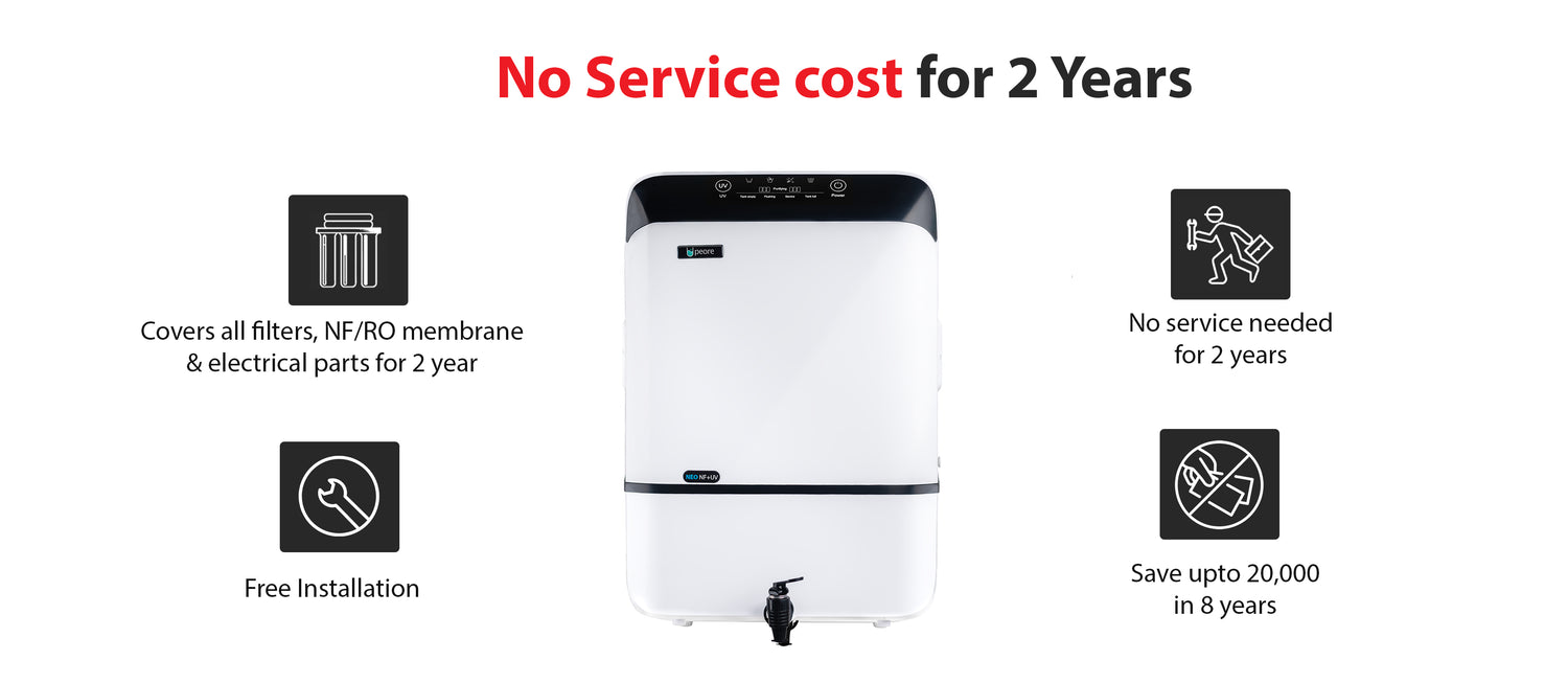 - Get 2 Years Peore Warranty. No hidden charges. If any issue occurs, you’ll get free replacement of Filters, Membranes & Spare parts.