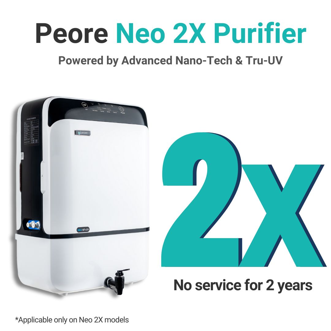 Peore Neo 2X NF+UV Water Purifier (White) | No Service for 2 Years | 2 Year Warranty
